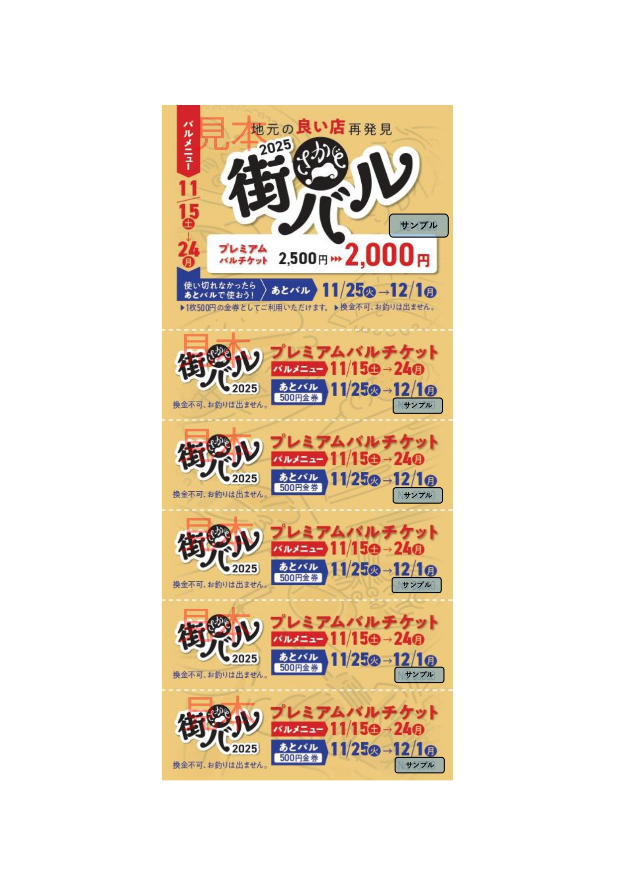 チケットは今回も1枚500円分が5枚つづりで1セットになっていて、2500円分を2000円で購入することができ、購入する時点でお得感を感じられます。