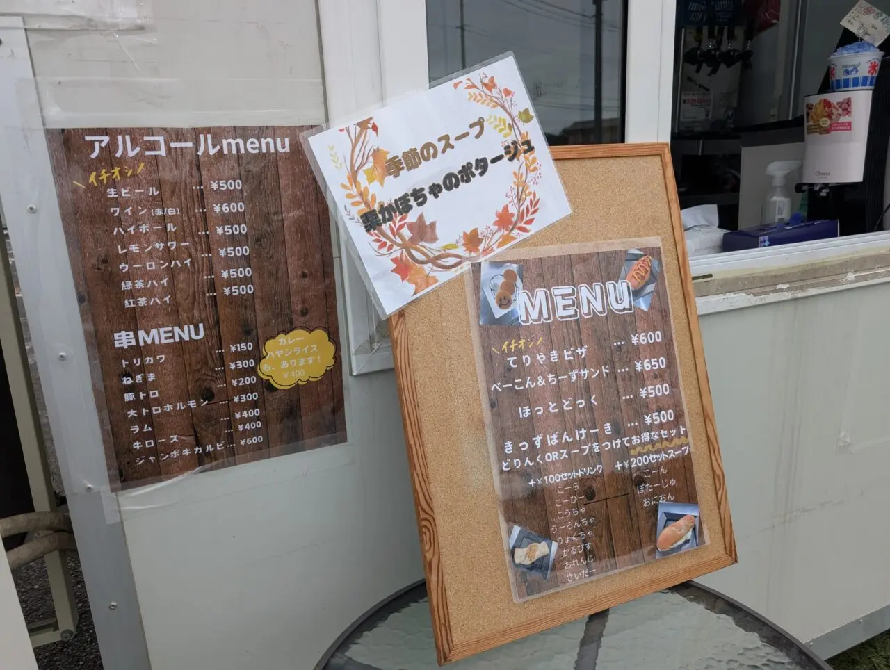 爆盛り屋で人気だったカレーや串焼きなどメニューも引き続き楽しむことができるとのこと。ドリンクやスープはセット価格がお得、アルコールも楽しむことができます。