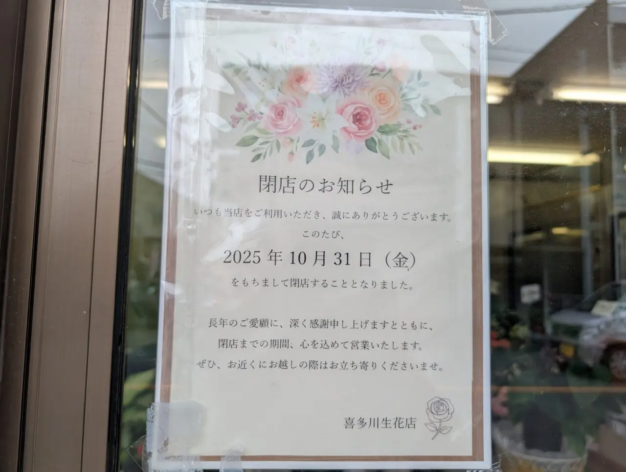【坂戸市】創業50年の「喜多川生花店」が10月31日(金)をもって閉店されてしまうとのことです・・・。