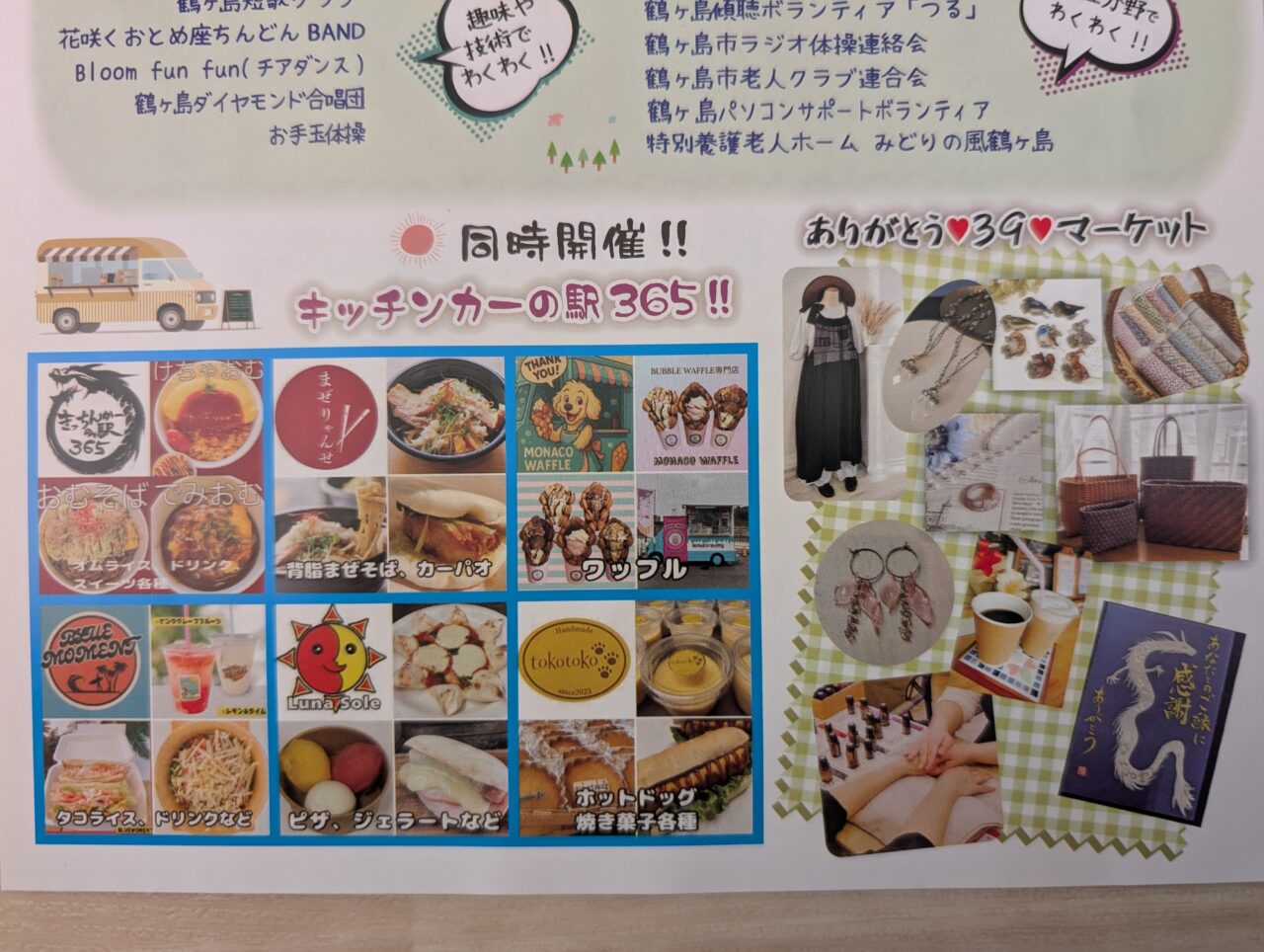 きっちんかーの駅365やありがとう♥39♥サンキューマーケットも同時開催となっており、グルメやハンドメイド雑貨などのお買い物を楽しむこともできるそうです。