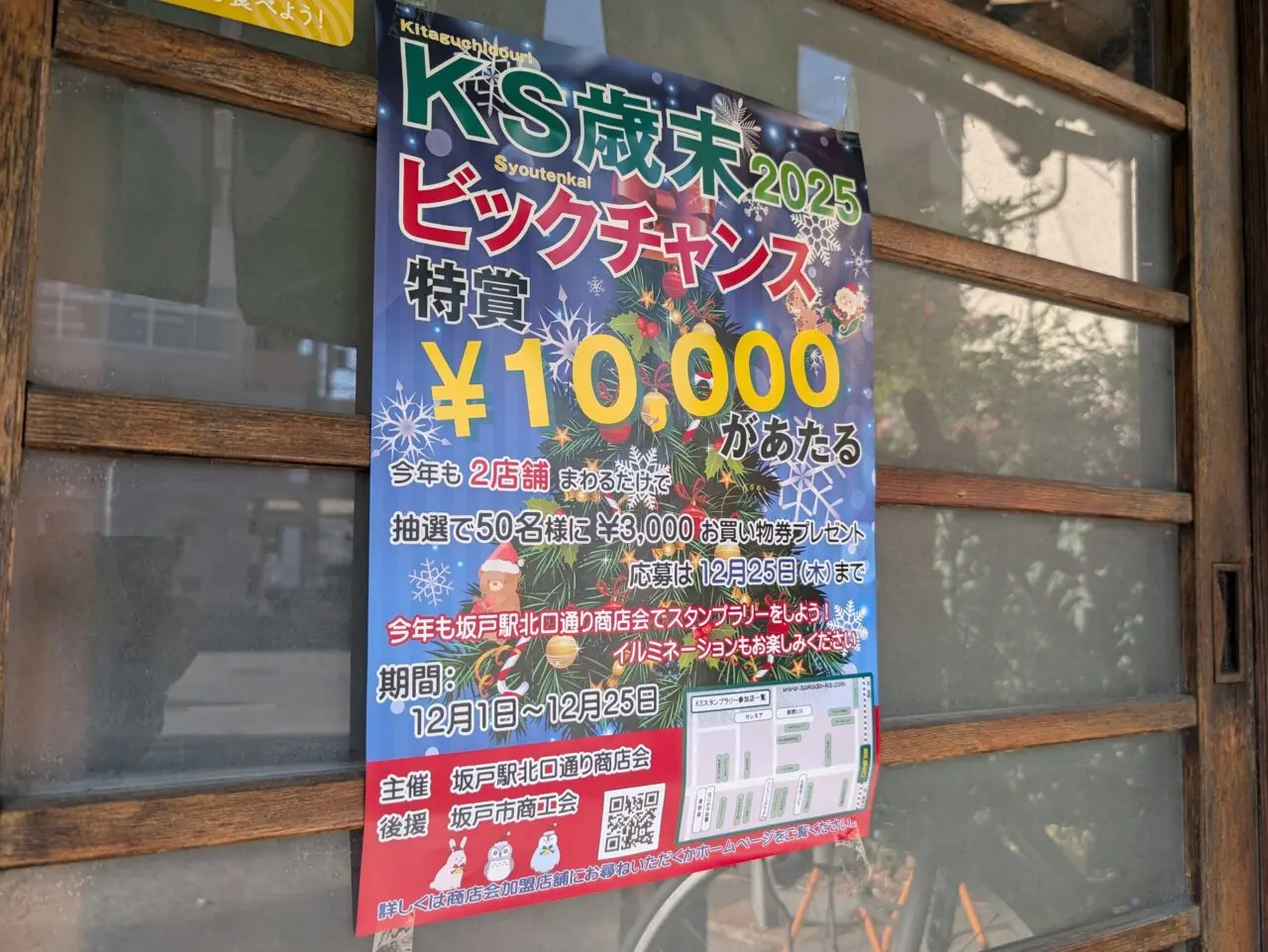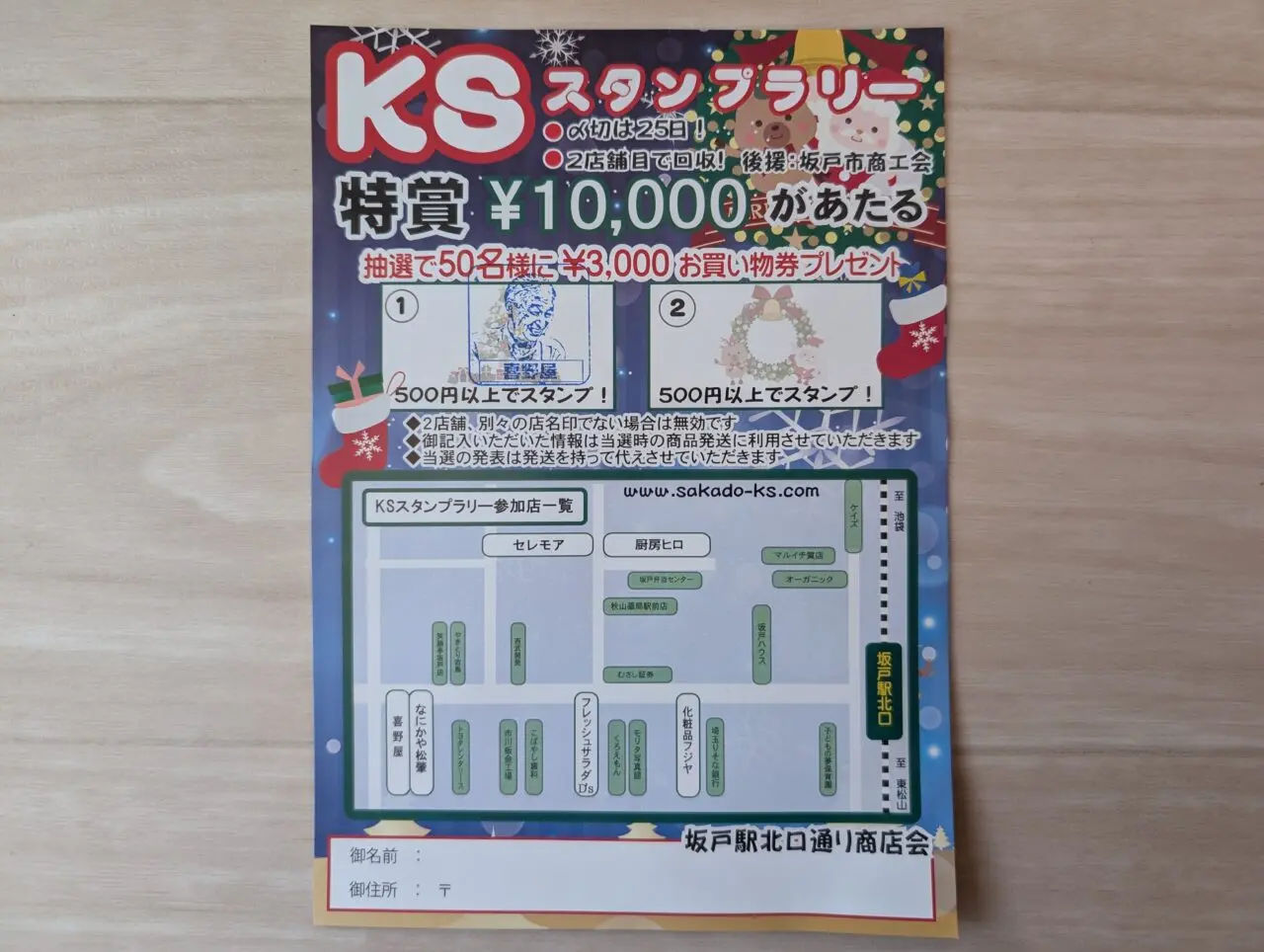そして、坂戸駅北口通り商店会では、歳末恒例のKSスタンプラリーが2025年12月1日(月)~25日(木)まで開催しています。