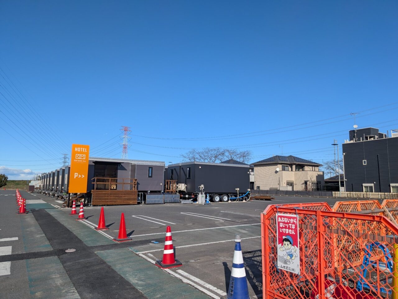 2025年12月下旬、「セキチュー 東松山高坂店」の駐車場の前を通りかかったところ、駐車場の東側のフェンスにお知らせがあるのを見つけました。そこには、「Workman Colors 2026.春 OPEN 予定」の文字が。ワークマンの新業態のお店で、よりファッション性の高いワークマンのアイテムを販売する「ワークマン カラーズ」がオープンするとのこと。ワークマンといえば、作業服などのプロ仕様のアイテムだけでなく、機能性の高さを活かしたファッション性の高いアイテムを展開し、一般の方から人気となっていますよね。うれしいオープンとなる方も多いのではないでしょうか?そして、ワークマン カラーズがオープンする予定地から北側にはトレーラーハウスがずらりと並んでおり、「HOTEL」と書かれた看板が立てられていました。セキチュー東松山高坂店の駐車場はかなり広々していましたが、まさかこのような展開になるとは驚きですね。これはどちらも楽しみなオープンではないでしょうか?詳しいオープン日などの情報が入りましたら、こちらでまたお伝えいたします。
