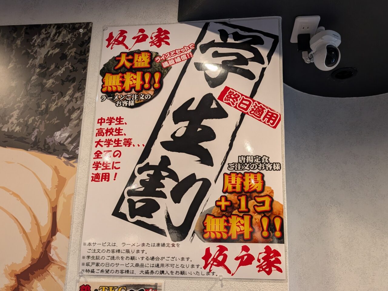 学生のみなさんの利用も多い坂戸駅。うれしい学割も利くお店ということで、食べ盛りの学生のみなさんもおなかいっぱいいただけます。