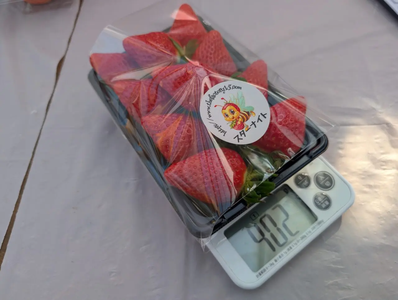 オープン直後は販売のみでしたが、いちご狩りや摘み取りもスタートされたということで、再び伺ってきました。こちらののぼりが営業中の目印です。1月下旬、ハウス内では真っ赤な大粒のいちごが数多く成っていました。いちごは一番果〜二番果が最もおいしいと言われているそうですが、こちらで栽培されている10種類ほどのいちごは、まさにその旬を迎えているところです。晴天が続き、筆者が伺った日は特になり具合がよかったそうです。販売も引き続き行っていますが、たくさんその場で食べたい方は食べ放題のいちご狩り、好きなものを好きなだけ摘んでご自宅でゆっくり味わいたい方は摘み取りといったように、選ぶことができます。摘み取りは、どの品種でも100g500円(税込)です。こちらはスタッフさんによるセレクトですが、こちらで400gほどとのこと。どの品種もそれぞれ特色があり、それぞれの方の好みによるところがあるそうですが、いわゆる白いちごの品種、桃薫(とうくん)を初めて食べる方は、その名の通り桃のような香りと味わいにみなさん驚かれるそうです。摘んだいちごは、ハウスの奥にある、聖天宮を正面に見渡せるスペースでいただくこともできます。イスとテーブルが並び、ブランコも設置されていて、ゆっくりとくつろぐことができます。いちご狩りは飛び込みでの受付も可能ですが、予約優先とのこと。予約はWEBサイトからのみ受け付けているとのことです。旬のみずみずしい甘くて濃厚な味わいのいちごは、オープンからすでに多くの方々から好評を得ているそうですが、宣伝方法はWEBサイトInstagramのみということで、穴場スポットと言えそうです。お支払いは、現金の他、キャッシュレスにも対応されているのもうれしいポイントですね。いちご好きの方なら訪れたい「The FACTORY 15」。みなさんもおいしい旬のいちごを味わってみてはいかがでしょうか?