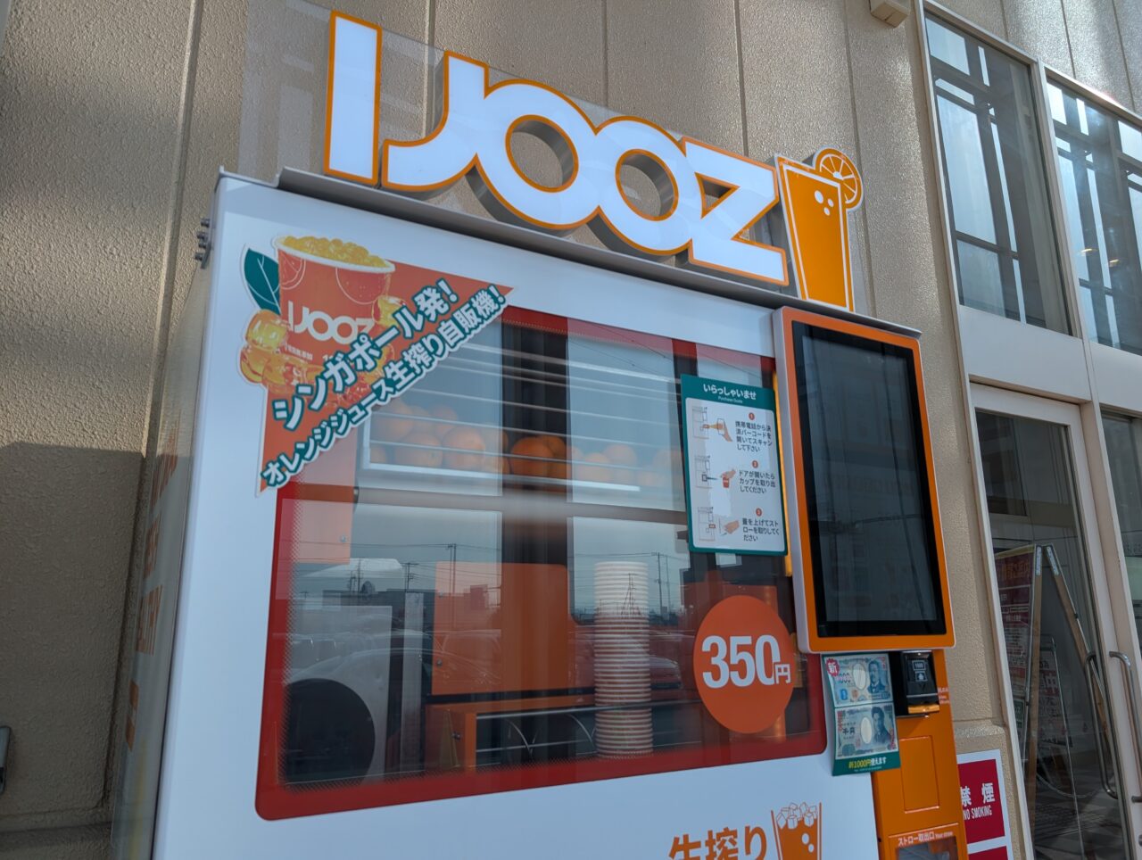 「IJOOZ」はシンガポール発のフレッシュオレンジジュースの自動販売機で、オレンジ4個分の生搾りオレンジジュースをいただくことができるそうです。こちらでの価格は1杯350円で、時間も価格もコスパ良く栄養を取り入れたい方にはぴったりです。お買い物帰りのリフレッシュにもいいですね。
