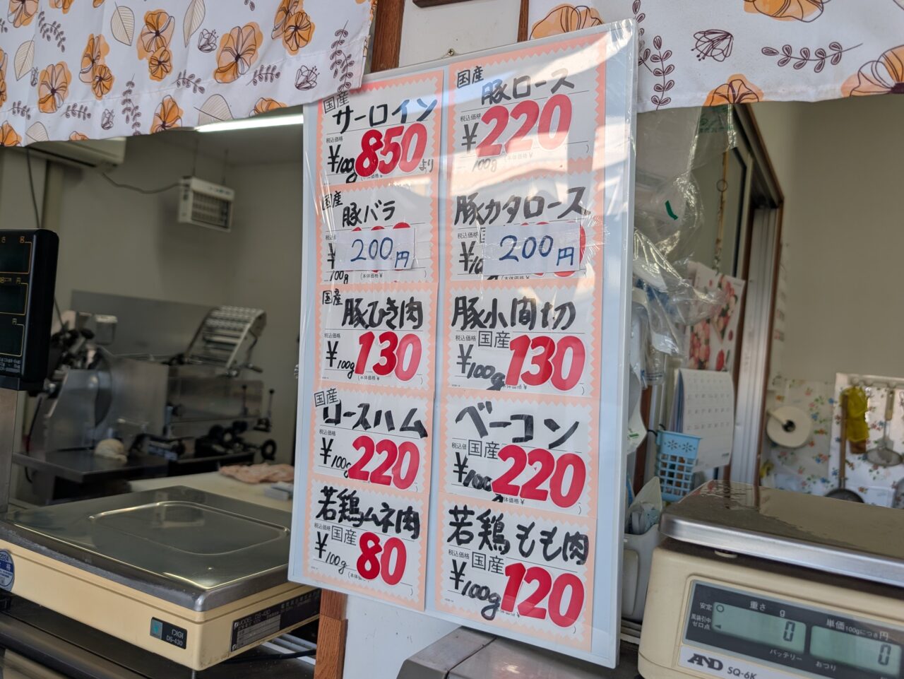 店内で購入できる精肉は、昔ながらの量り売りスタイル。