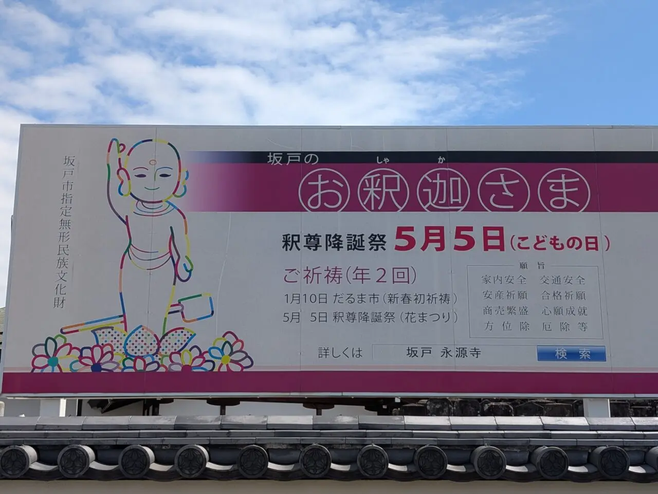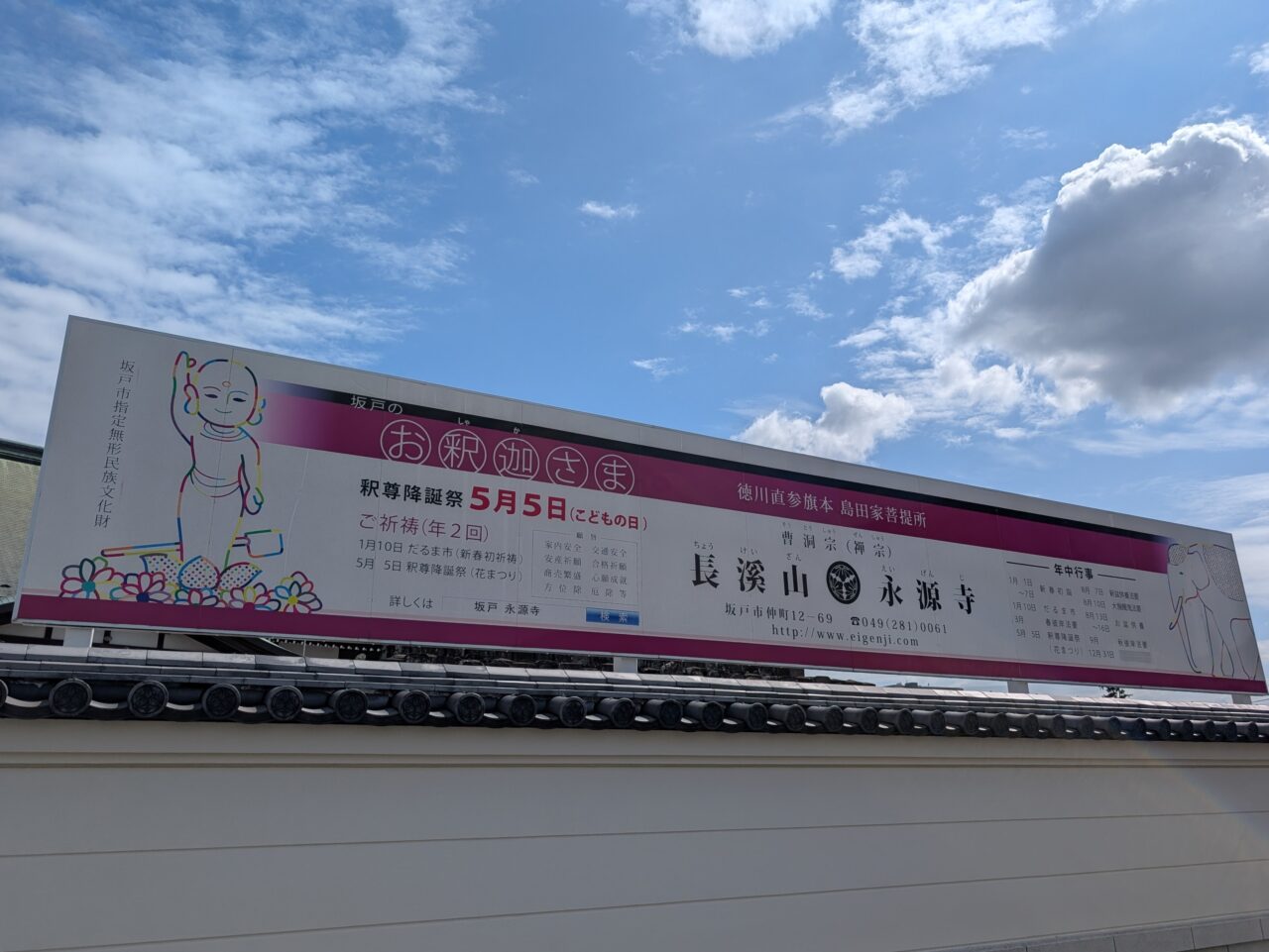 2026年5月5日(火・祝)、坂戸市仲町にある「永源寺」では毎年恒例の釈尊降誕祭(別名:花まつり・坂戸のお釈迦さま)が開催されます。