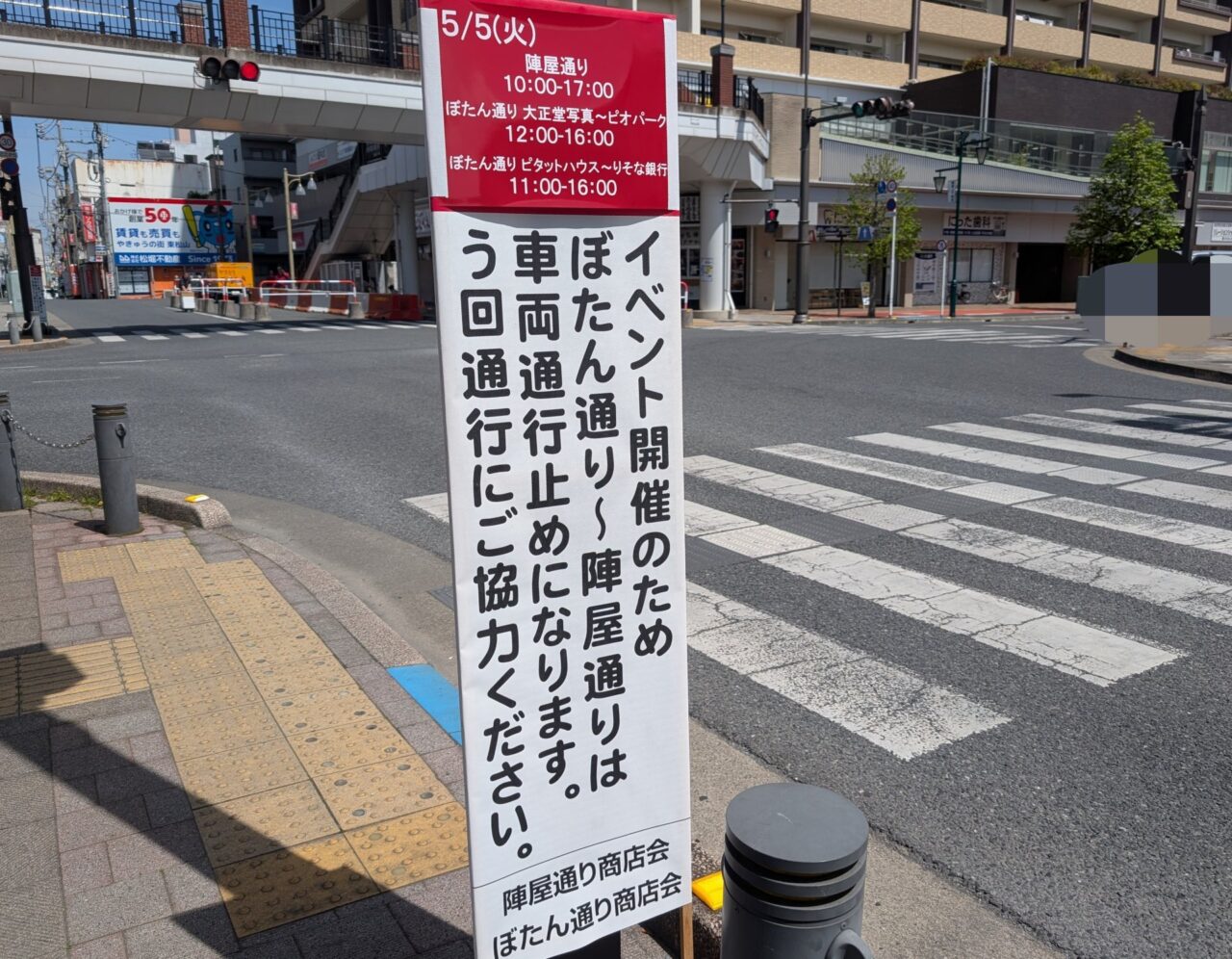 なお、イベントの開催に伴い、陣屋通り(10:00-17:00)とぼたん通り(大正堂写真〜ピオパーク12:00-16:00・ピタットハウス〜陣屋通り11:00-16:00)は交通規制が行われます。周辺道路も混雑などが予想されるため、ご注意ください。