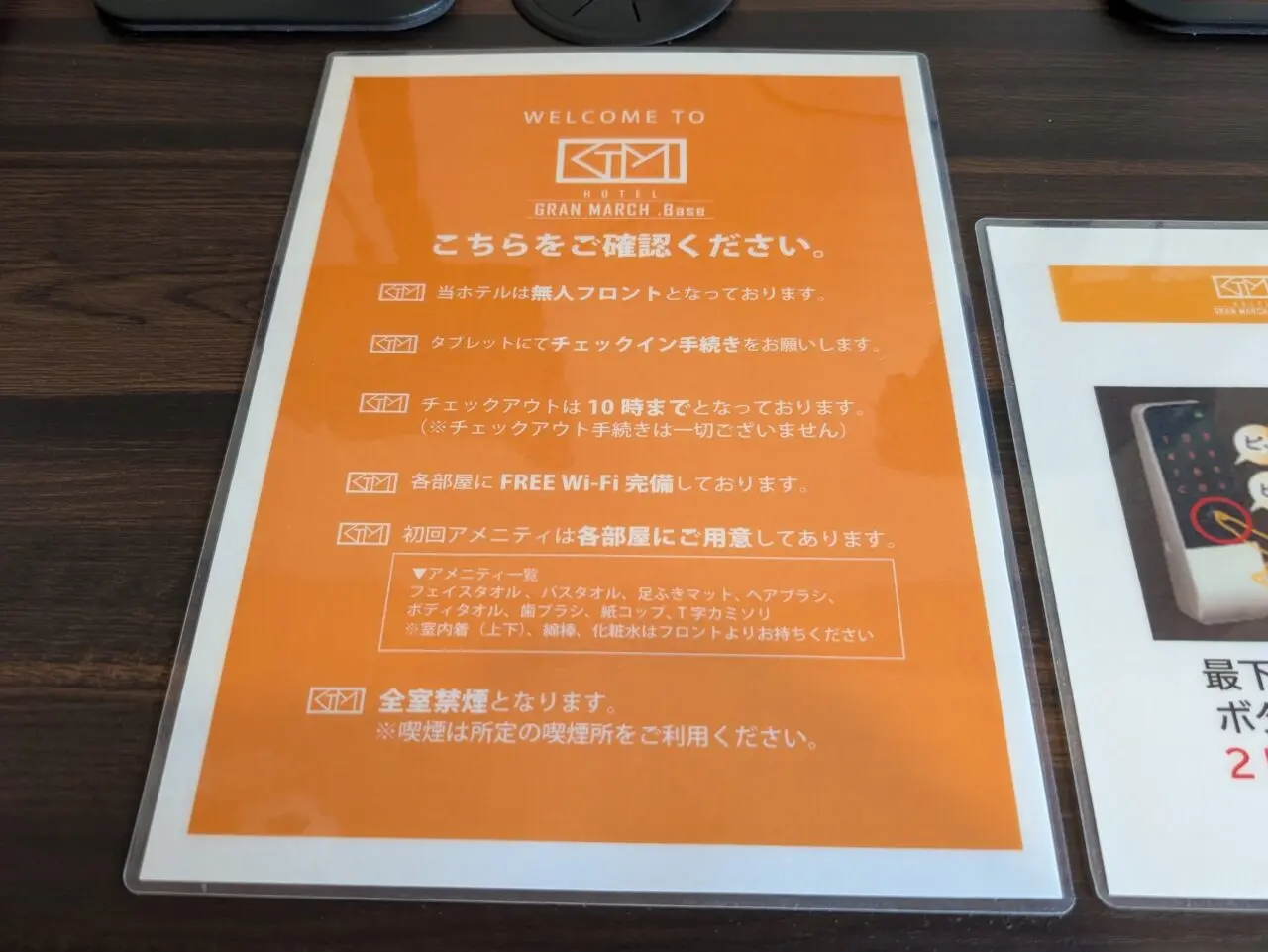 お支払いは事前決済のみ、チェックインはタブレット端末にて、無人での対応となります。